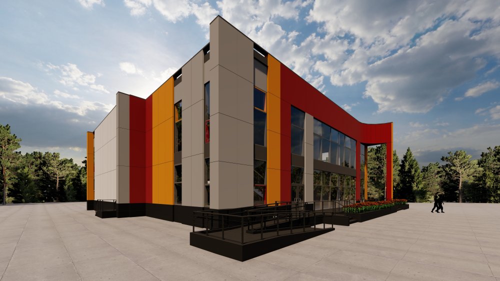 Цветовое решение фасадов здания обусловлено общей концепцией «Краски Севера» окружающей застройки на территории Д/О "Торово".