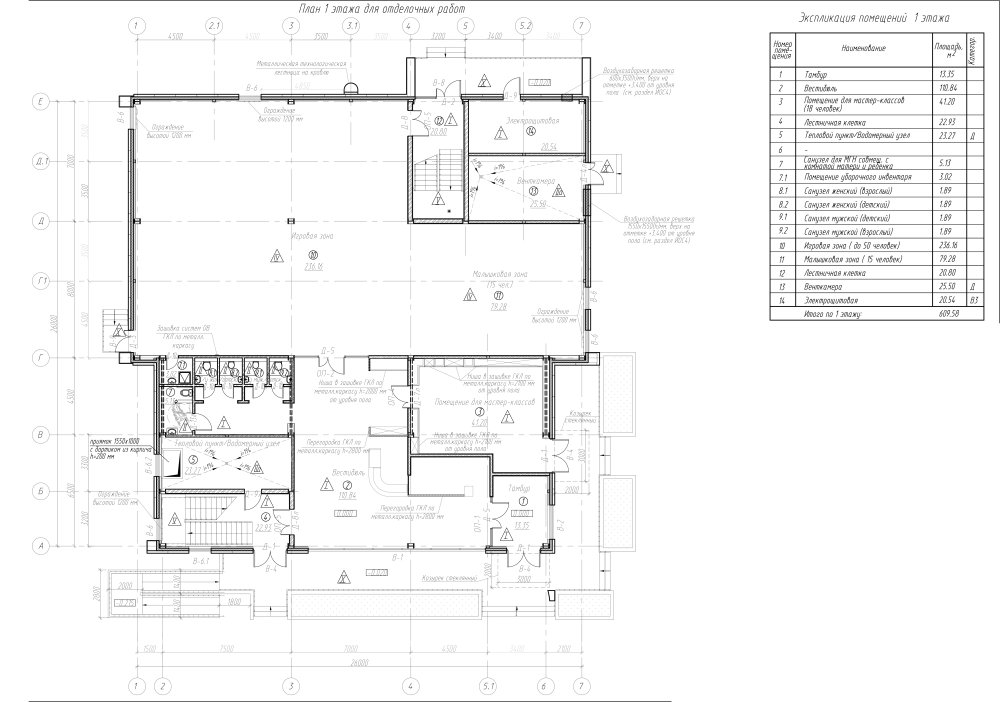 Здание развлекательного центра включает в себя помещения на следующие функциональные зоны: